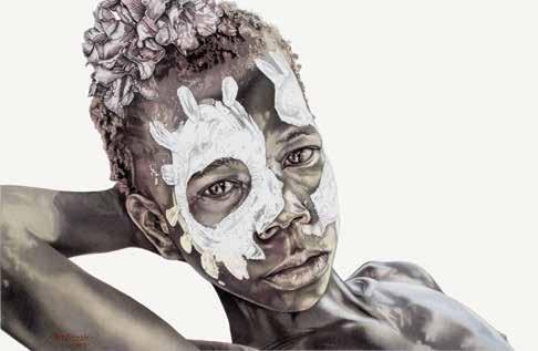 of layers to create depth on a two-dimensional surface, Frier's art reveals complex narratives